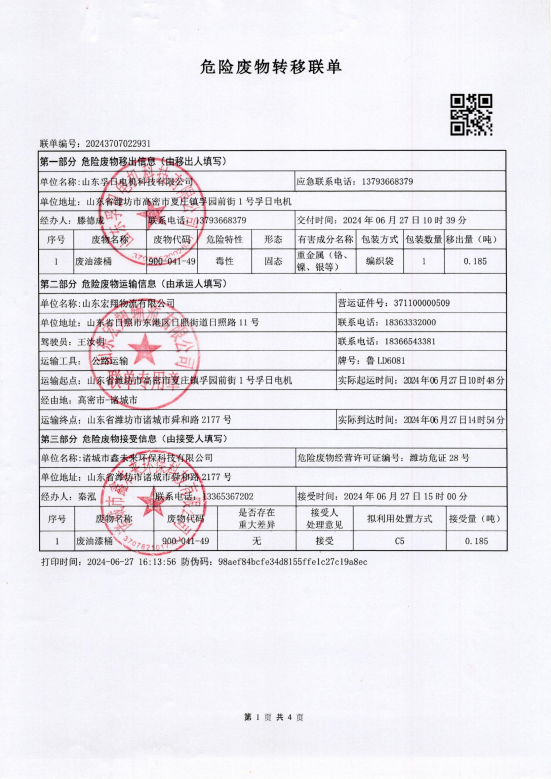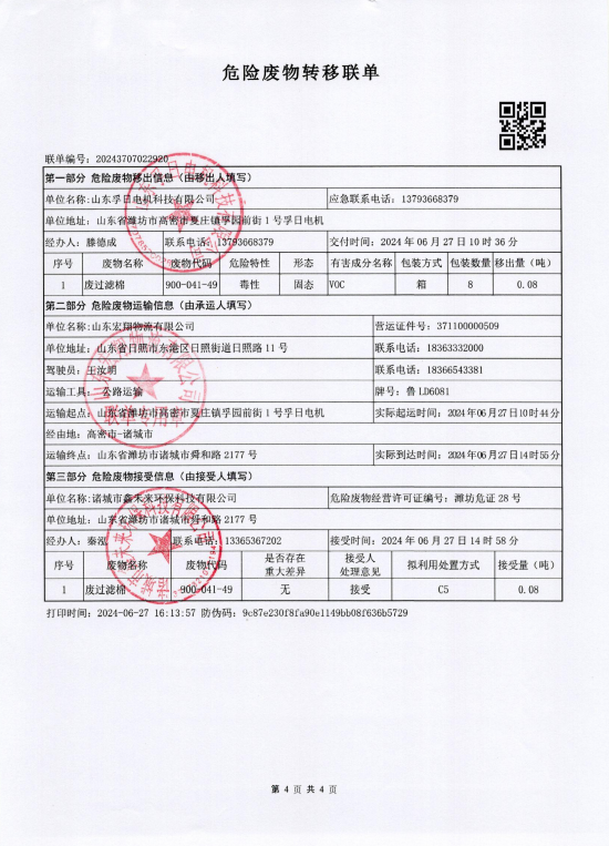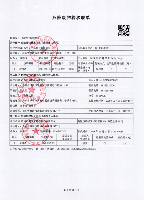 2024年度孚日电机危废....