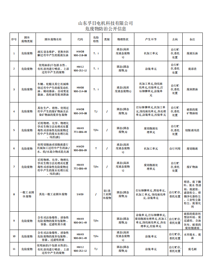 2024年度孚日电机危废物防治信息公开